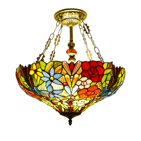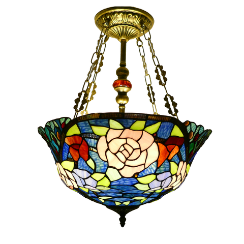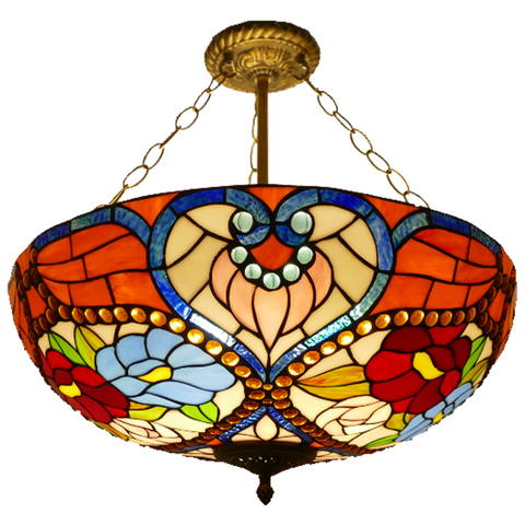 โคมไฟติดเพดานกระจกสีทิฟฟานี่สไตล์บาโรกคลาสสิค20นิ้วโคมไฟระย้าสไตล์ย้อนยุคสำหรับห้องอาหารบาร์คลับห้องนอนที่แขวนขนาดใหญ่