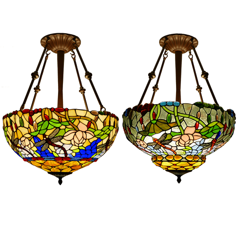 โคมไฟระย้ารูปแมลงปอทิฟฟานี่18 "หลอดไฟโลหะแก้วสำหรับแขวนในห้องสไตล์ยุโรปและร้านอาหาร