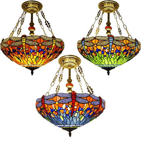 โคมไฟระย้ากระจกสีรูปแมลงปอสไตล์อเมริกันคลาสสิคขนาด18นิ้วสไตล์วินเทจสำหรับร้านอาหารบาร์คลับหรือห้องนอน